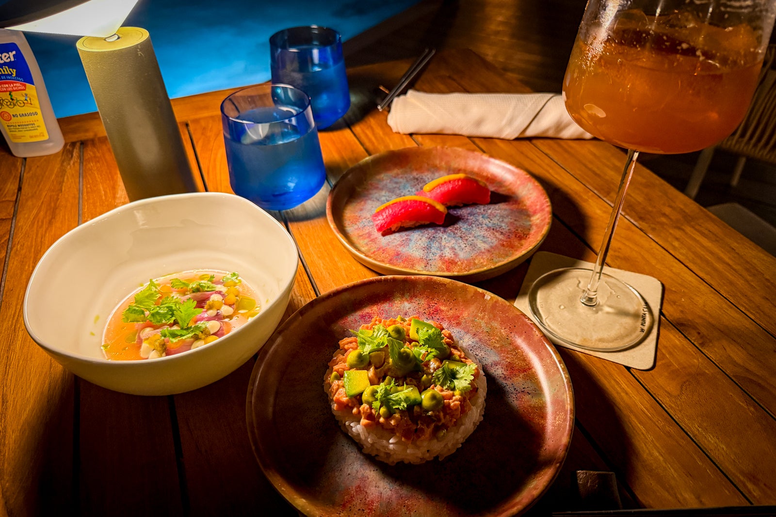 At Satsuma Rooftop, overlooking a rooftop pool and featuring a great fireplace to sit around, we enjoyed a good mix of raw dishes, such as tuna tartare and delicate pieces of nigiri. Again, this meal didn’t feel like anything you’d expect (or maybe even trust) from older all-inclusive resorts. It was delicious, especially alongside our bespoke gin cocktails recommended to us because Hoshi made sure everyone knew we loved gin and tonics.