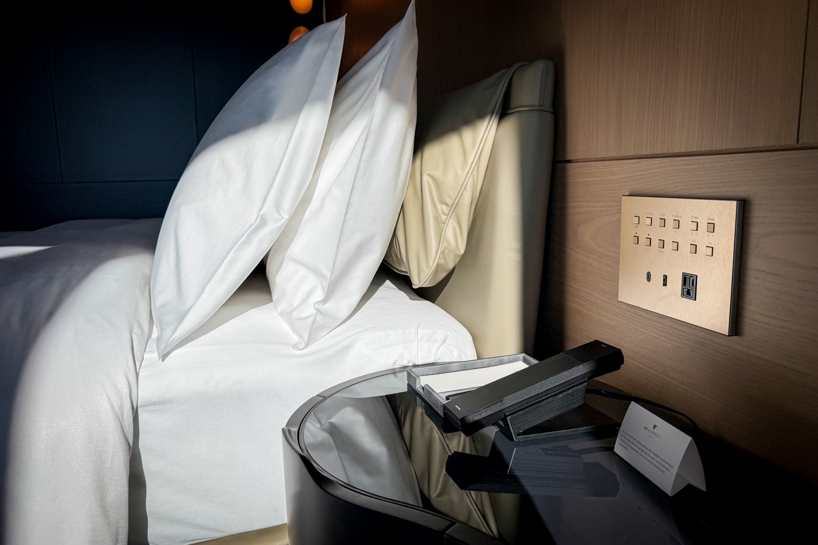Beside the bed, a hub of buttons controlled lights, window shades and drapes. A USB-C port made it easy to charge my iPhone.