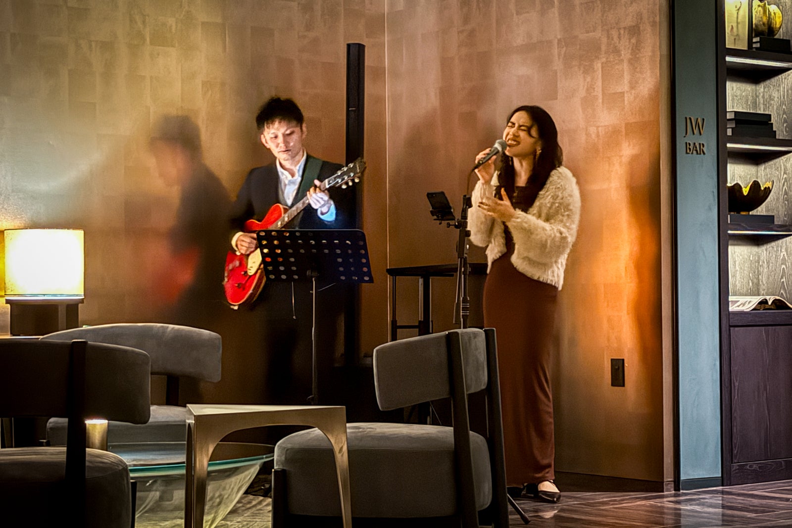 And at the JW Bar, a signature cocktail menu offered creative takes on popular cocktails, including some — like this margarita-like drink — served in out-of-this-world glassware. Throw in a duo performing soothing pop covers, and it really felt like I was in the most relaxing place in Tokyo.