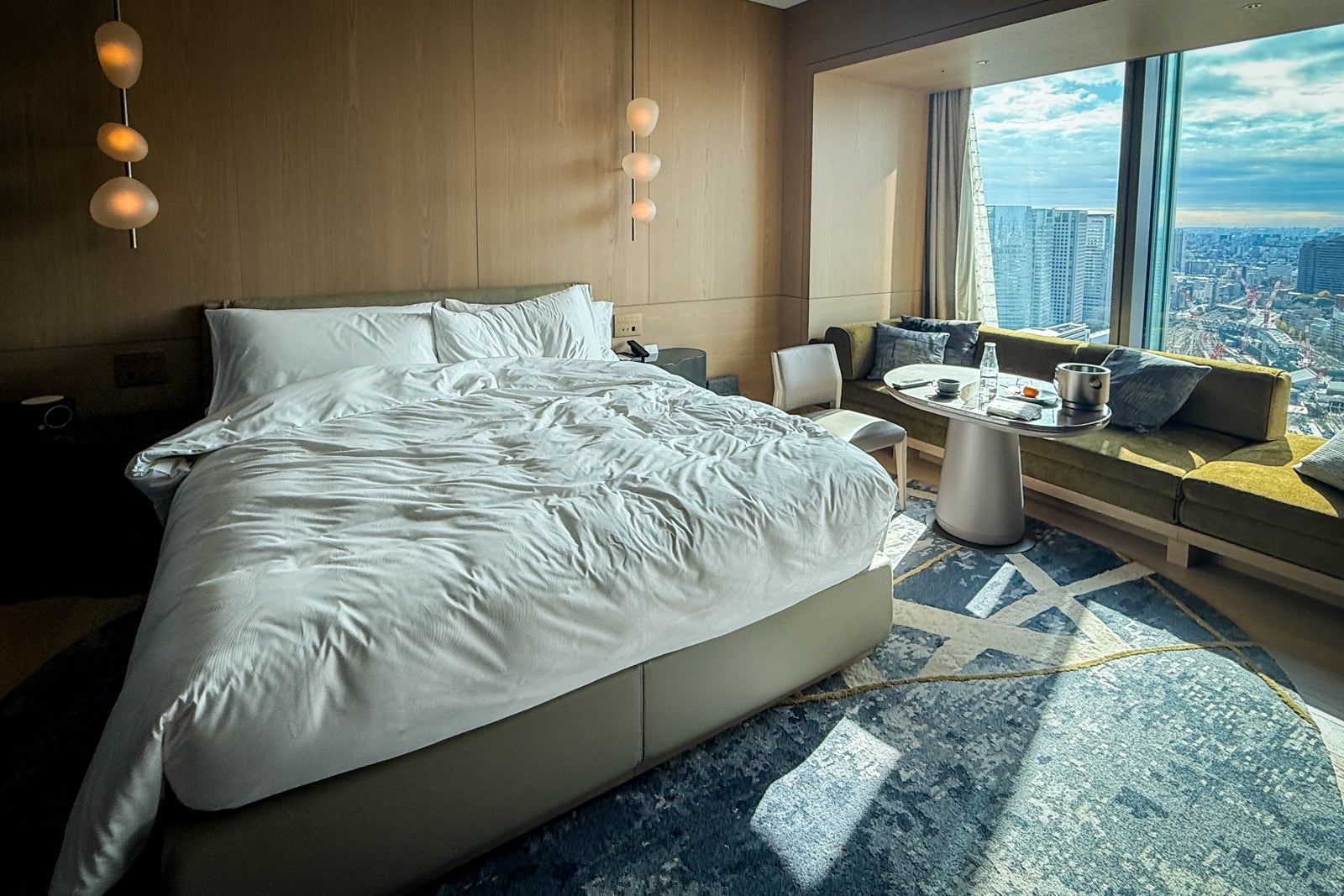 For my two-night stay, I stayed in an entry-level Urban Deluxe king room. From the moment I stepped into the massive space (rooms start at 463 square feet), I was impressed with its level of sophistication, stylish ease and sense of calm that juxtaposed with sweeping views of bustling Tokyo down below.